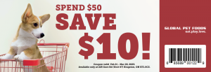 Show this coupon at the cashier when you spend $50+ and save $10.